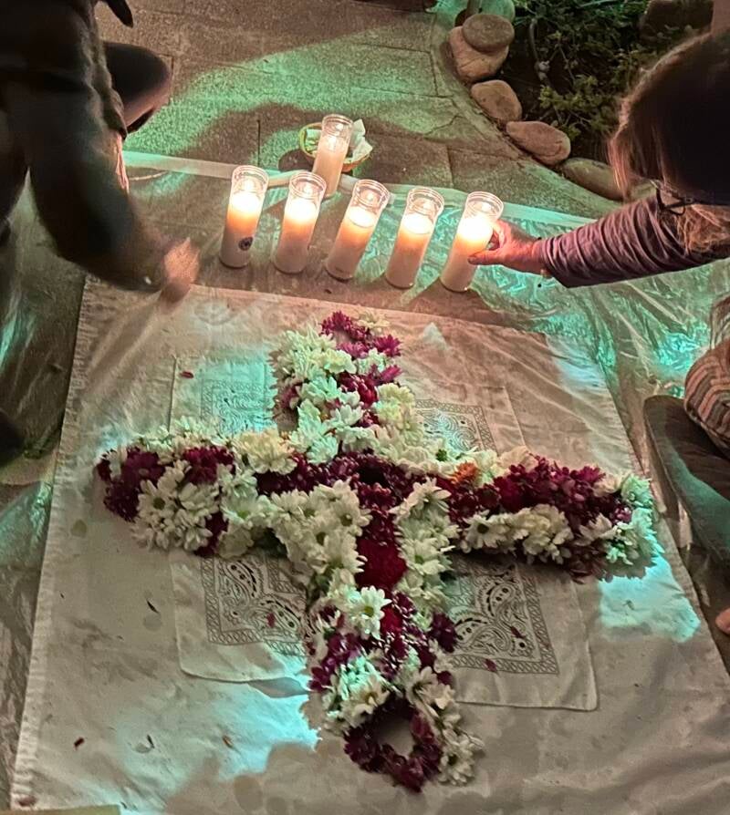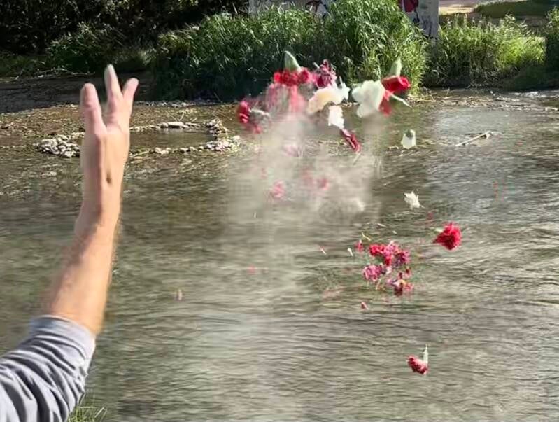 Después al día siguiente, las flores liberadoras se tiraron al río a seguir trabajando desde el elemento agua.